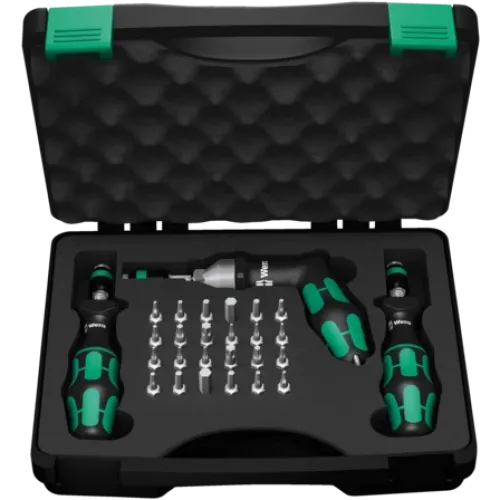 Інструменти постачаються у міцному пластиковому футлярі, який забезпечує впорядковане зберігання та захист точних механізмів від забруднень. Кожна рукоятка проходить індивідуальну перевірку на заводі.