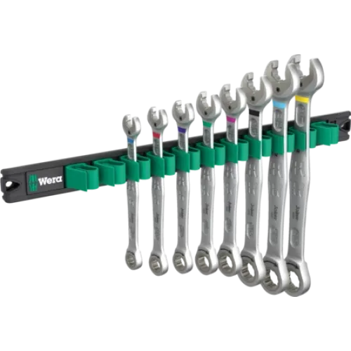 Набір дюймових комбінованих ключів Wera 6000 Joker Imperial 1 на магнітній планці 9632 Magnetic Rail забезпечує професійну роботу з кріпленням завдяки вбудованій тріскачці та функції утримання. Комплект артикул 05020016001 включає 11 інструментів для монтажних робіт.