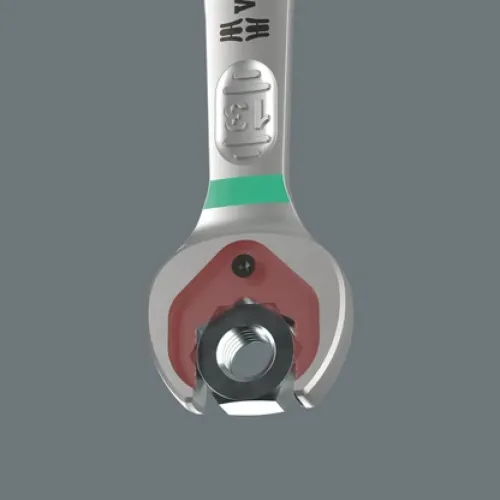 Ключі серії Joker вирізняються особливою геометрією рожкової частини: змінна металева пластина в губці працює як обмежувач, що запобігає зісковзуванню ключа з головки болта. Ця ж пластина надійно утримує гайку, дозволяючи працювати у важкодоступних місцях без ризику втрати кріплення. Подвійний шестигранний профіль забезпечує щільне прилягання та зменшує кут повернення до 30°, що мінімізує необхідність перекидання ключа.