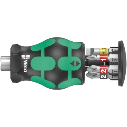 Компактна викрутка-бітотримач серії Stubby, призначена для монтажних робіт в обмеженому просторі. Конструкція передбачає зберігання насадок безпосередньо в корпусі інструмента.