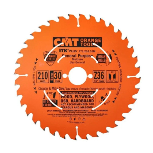 Пильний диск серії CMT ITK PLUS діаметром 210 мм розроблений для поздовжнього та поперечного розпилювання деревини. Завдяки комбінації 36 зубів та зменшеній товщині корпусу, цей інструмент адаптований для роботи на настільних циркулярних пилах, торцювальних верстатах, а також на мережевому та акумуляторному електроінструменті.