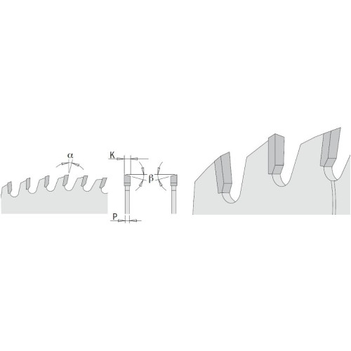 Тип заточки зубів/Кут нахилу задньої поверхні пильного диска β: 15° ATB