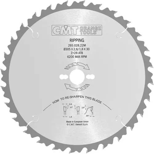 Пильний диск CMT серії 293 (артикул 293.315.28M) діаметром 315 мм призначений для поздовжнього розпилу масиву м'якої та твердої деревини. Інструмент розроблений для використання на ручних, акумуляторних та настільних циркулярних пилах.