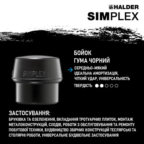Молоток HALDER Simplex 3026 насадки із чорної гуми, червоного пластику, бойок 60мм (3026.060)