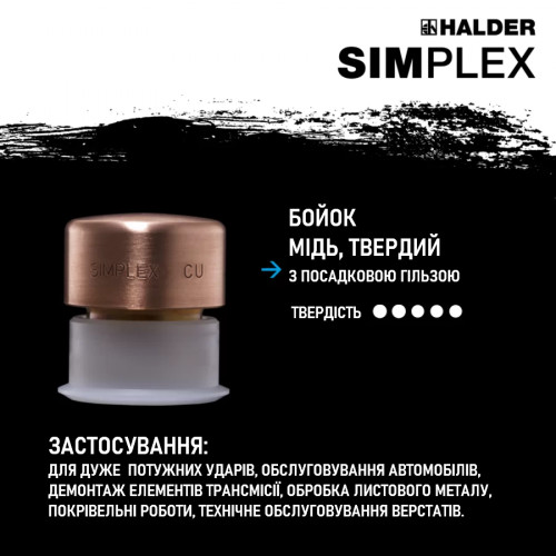 Молоток HALDER Simplex 3749 насадки із міді/термостійкого алюмінію, бойок Ø40мм (3749.040)