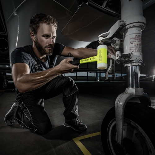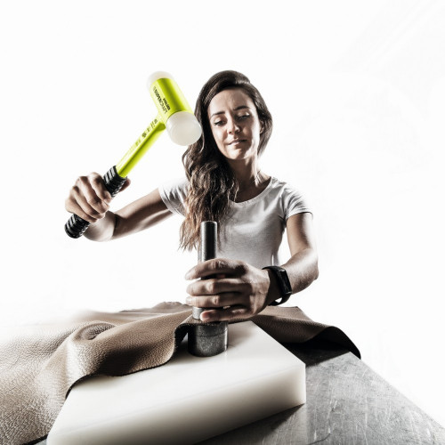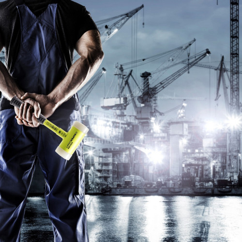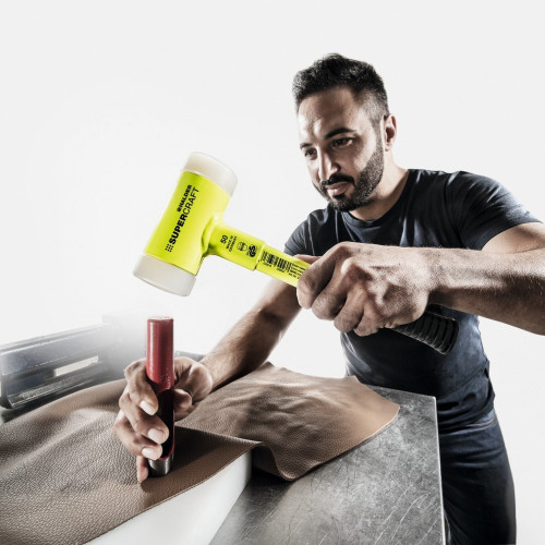 Безінерційний молоток Halder Supercraft серії 3377 з діаметром бойка 50 мм та вагою 1150 г призначений для виконання робіт, що потребують ударів без віддачі. Корпус молотка наповнений сталевим дробом, що поглинає енергію відскоку під час зіткнення з поверхнею, забезпечуючи передачу повної сили удару на деталь.