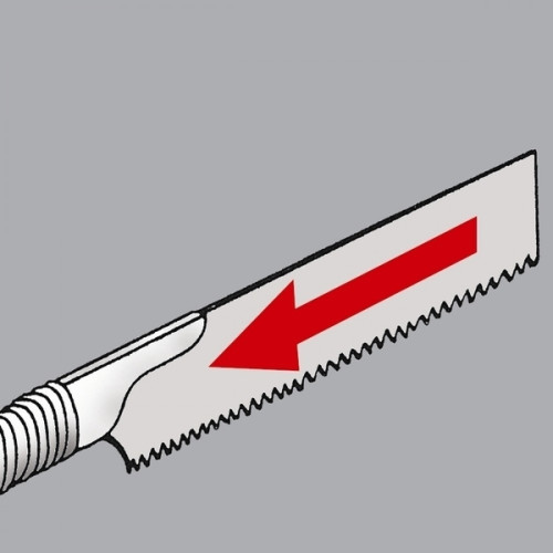 Конструкція зубів: Зуби мають тригранне заточування та загартовані індукційним струмом високої частоти. Крок зубів становить 1,75 мм (16 TPI), що забезпечує чистову якість зрізу.