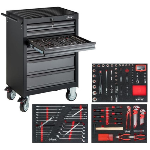 Візок VIGOR серії M з 7-ма висумними полицями та набором інструментів на 164 предметів.